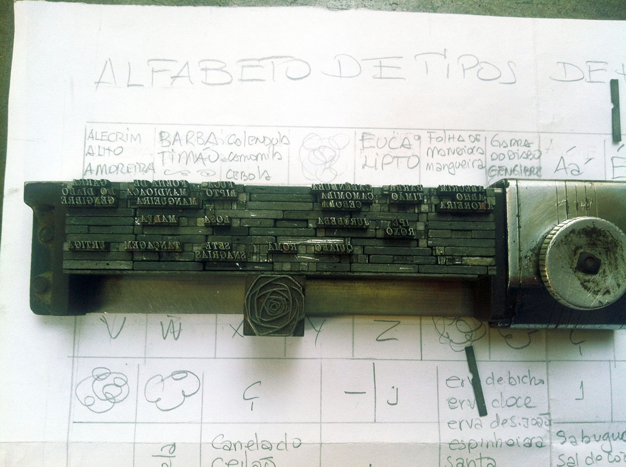 Fotos e vídeo do processo de produção do Alfabeto, no TipoLAB – Laboratório de Tipografia da Escola de Design da UEMG.