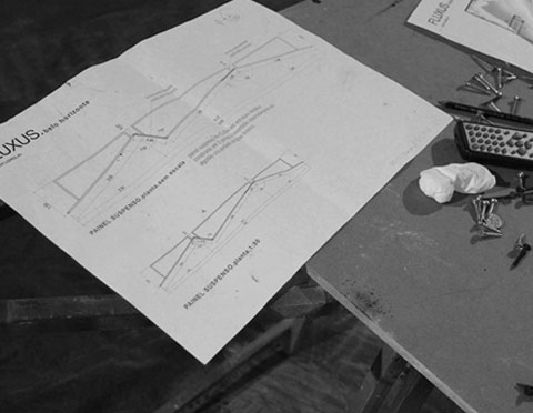 Para criar um possível diálogo entre as máquinas e os textos trabalhamos com uma composição de grids que valorizassem essa combinação. Veja as imagens da instalação em >>