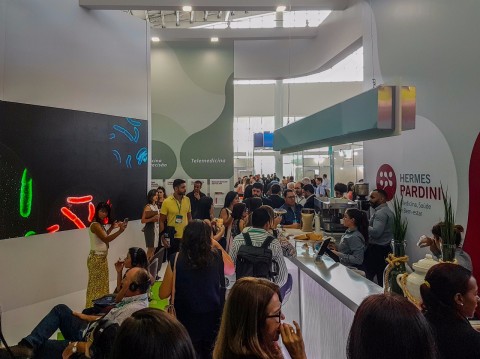 A partir do desenvolvimento da instalação audiovisual “Desmedido Humano”, que realizamos para o Hermes Pardini no CCBB-BH, fomos convidados para criar a Identidade Visual do Stand para a principal feira do segmento.