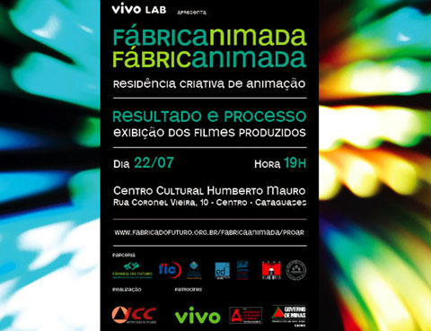 Nesta sexta feira, dia 22 de julho, acontece em Cataguases uma mostra das produções e do processo de criação do projeto Fábrica Animada, realizado numa parceria entre a Fábrica do Futuro, as Faculdades Integradas de Cataguases, a Escola de Design da UEMG e a Escola de Belas Artes da UFMG, dentro do programa Vivo Lab.