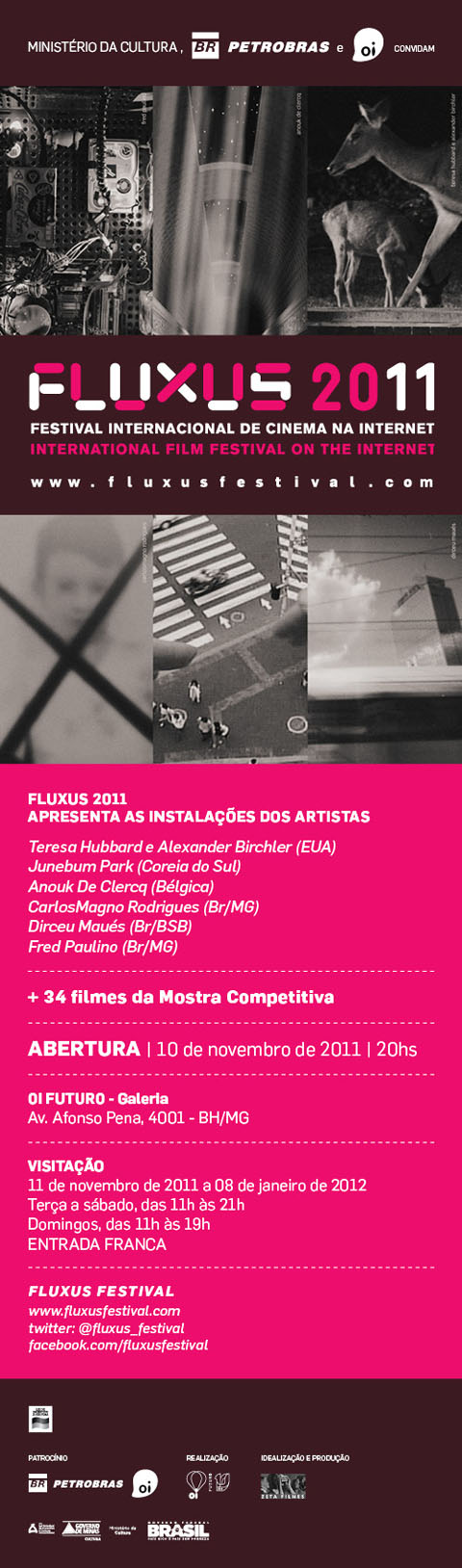 Depois de acontecer em São Paulo no SESC Pompéia, O Fluxus 2011 exibe na Oi Futuro Galeira de BH, a exposição de novas possibilidades do cinema, através das propostas de artistas de projeção mundial. São 7 instalações e 34 filmes (documentários, animações e vídeos experimentais), produzidos em 18 países. Todos podem ser vistos na mostra e no site www.fluxusfestival.com. Assista e vote. A Voltz desenvolveu toda identidade visual, peças gráficas, sinalização website e vinheta.