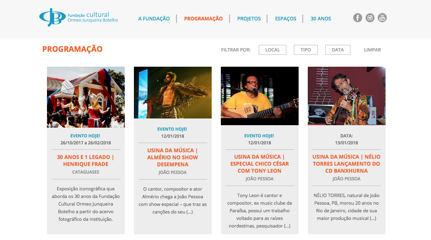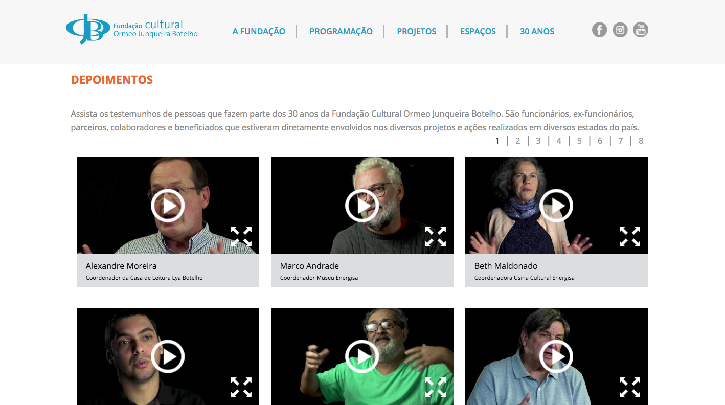 Fomos responsáveis também pela implantação da plataforma digital, com o objetivo de dar visibilidade a todas as ações, projetos e espaços culturais geridos pela Fundação. Criamos um sistema e um banco de dados com diversas filtragens, por cidade, por área de atuação. Ainda disponibilizamos uma linha do tempo diversos depoimentos em vídeo com os mais diversos envolvidos em todo Brasil.
